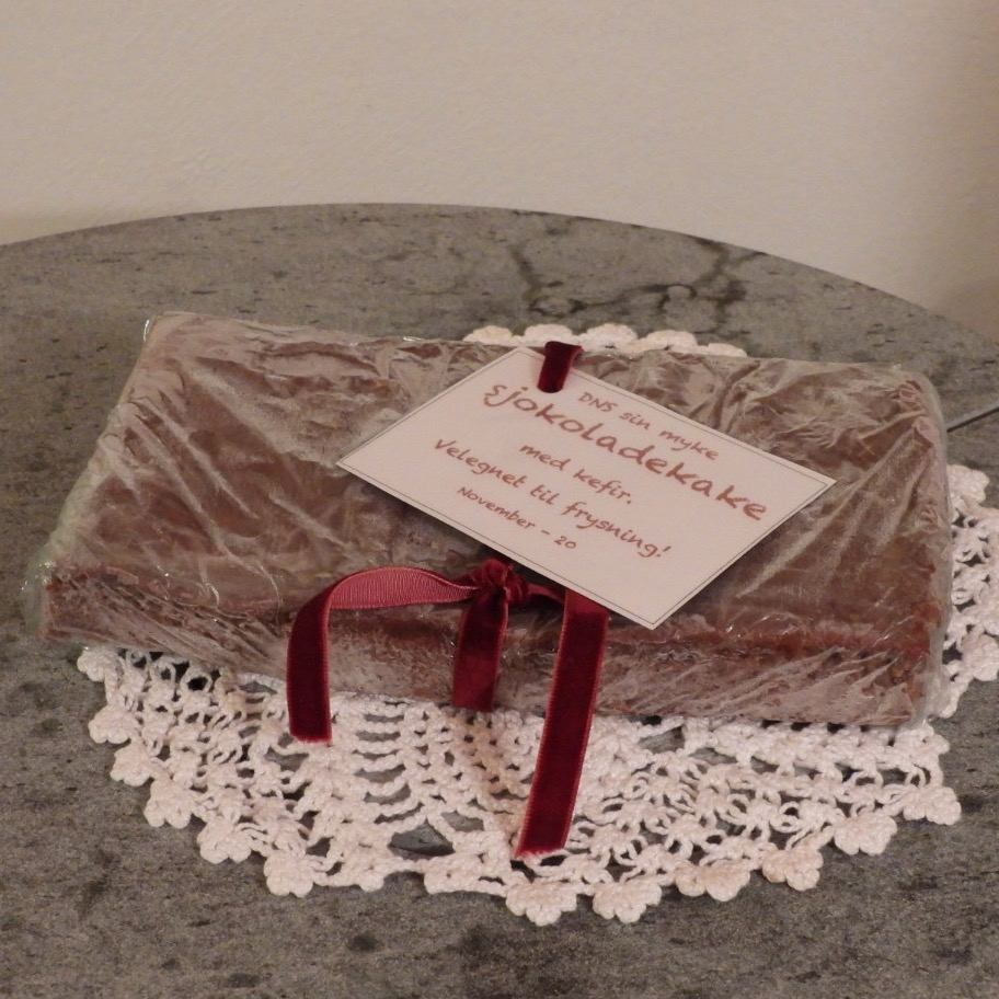 Saftig og god kefir/sjokoladekake, spesial oppskrift fra DNS (Den Nationale Scene). 1/6 langpanne, nok til 6-8 kakestykker.