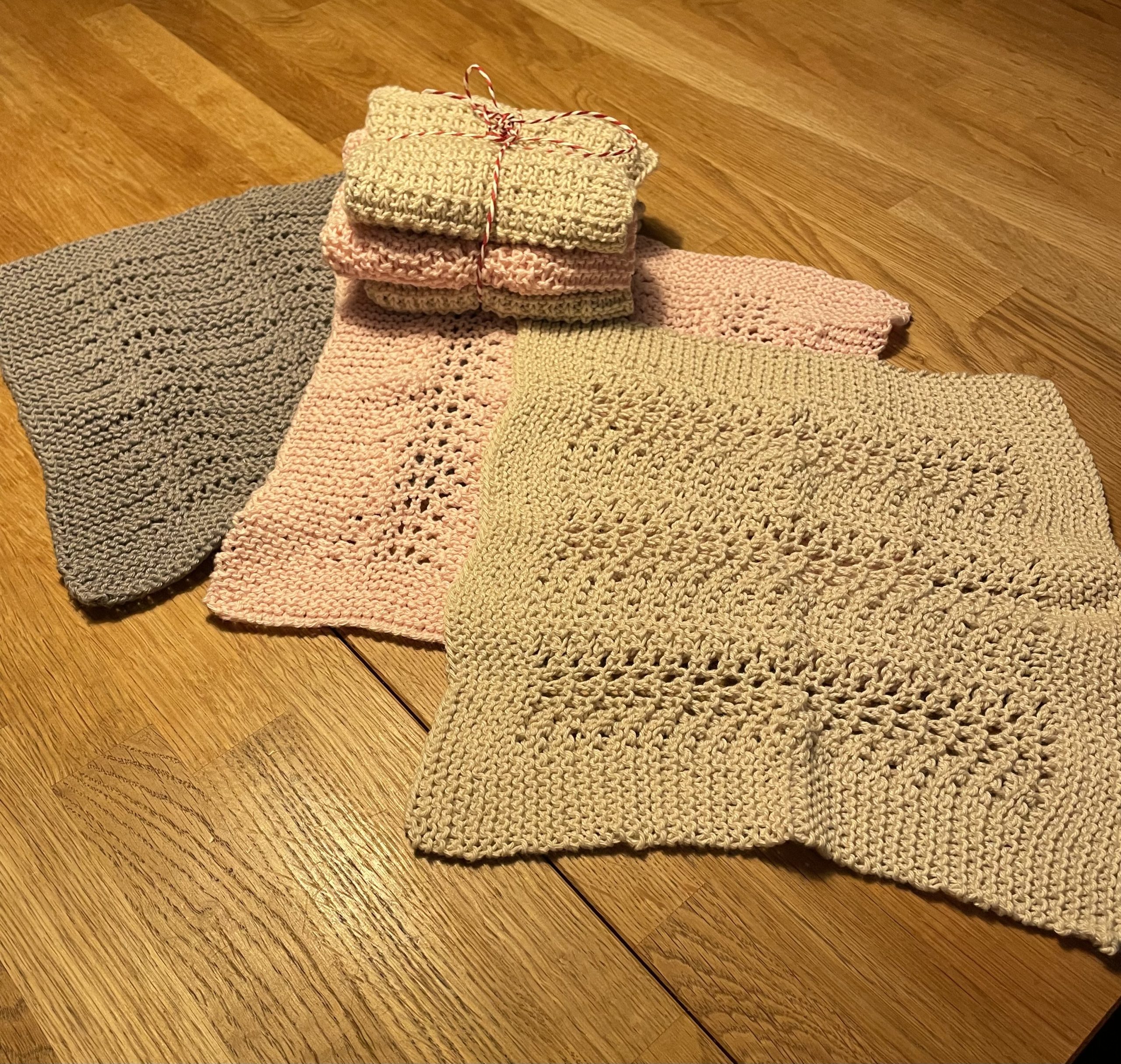Hjemmestrikkede vaskekluter/brikker, pakke à 3 stk