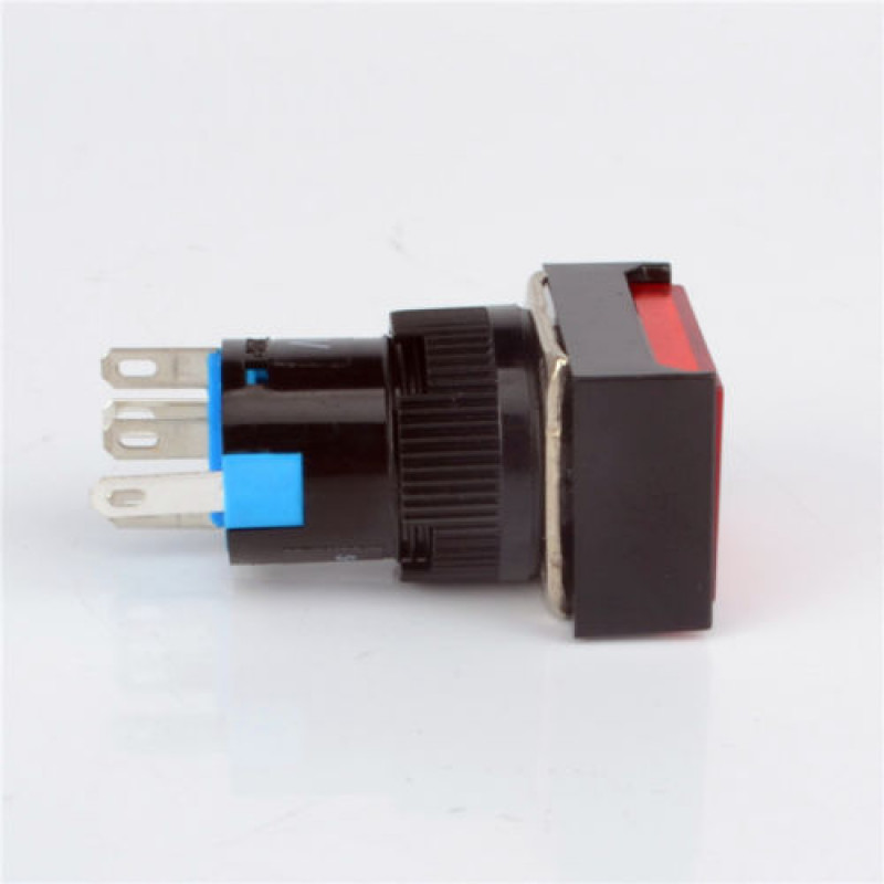 16mm Rectangle Momentary Push Button Switch Self-Lock Illuminated LED Lamp 5 Pins 12V